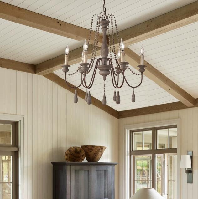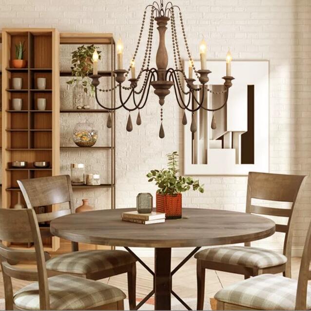 中古风客厅吊灯风扇灯吊扇灯美式乡村复古简约中古风大厅带电风扇餐厅灯