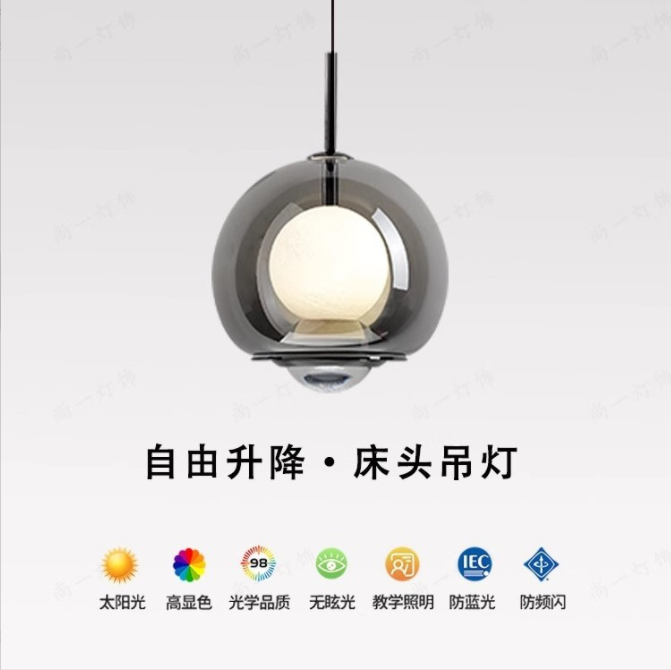 铝材卧室床头小吊灯创意现代简约可升降客厅背景墙极简吊线灯升降手扫