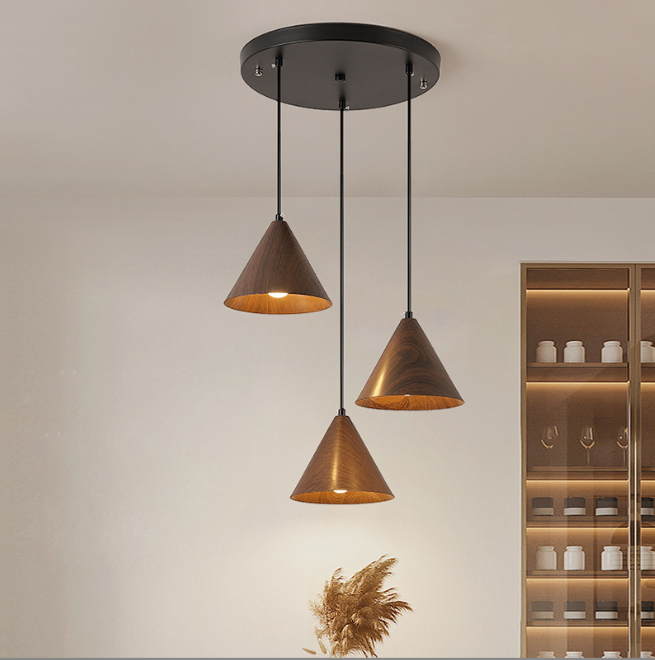 新中式餐厅灯罩吊灯复古火锅店吧台小吊灯民宿三头饭厅灯中山灯具