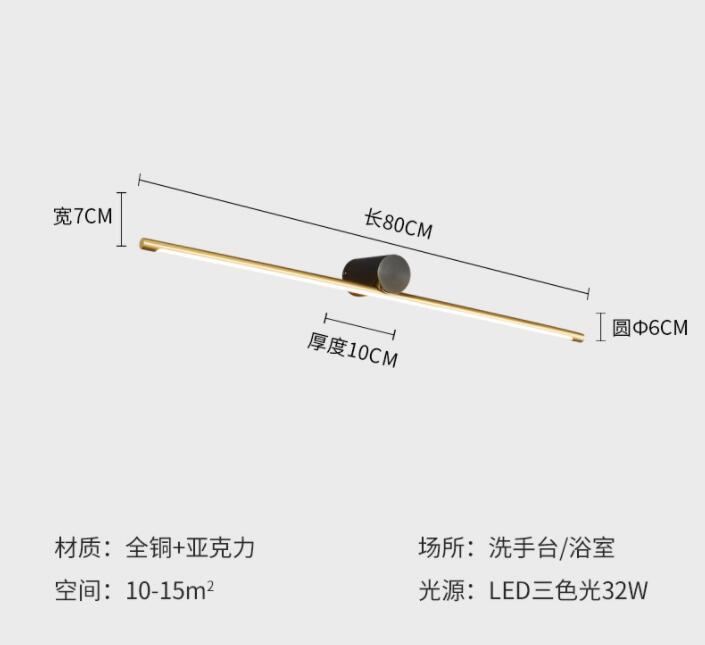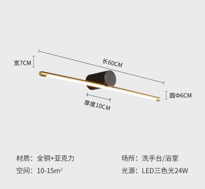 全铜现代简约洗手台镜前灯新款个性创意网红化妆台铜灯