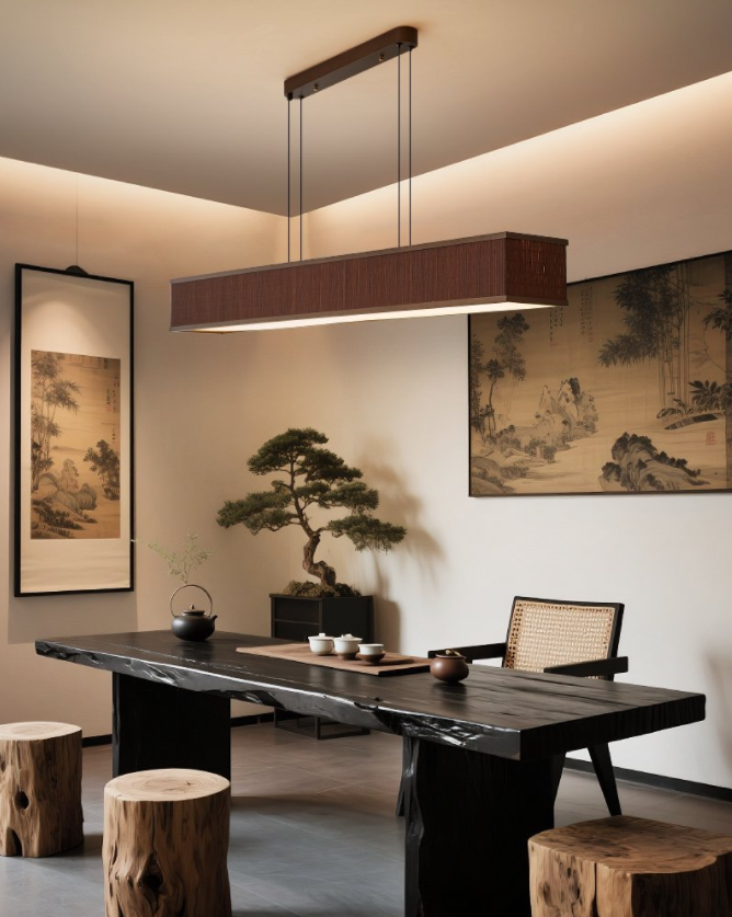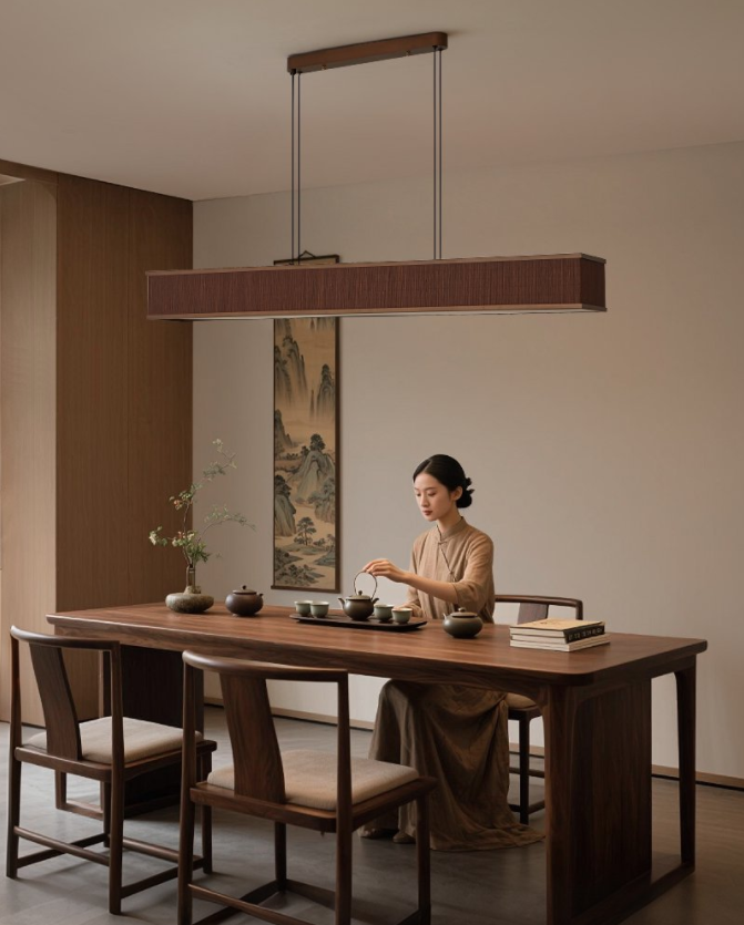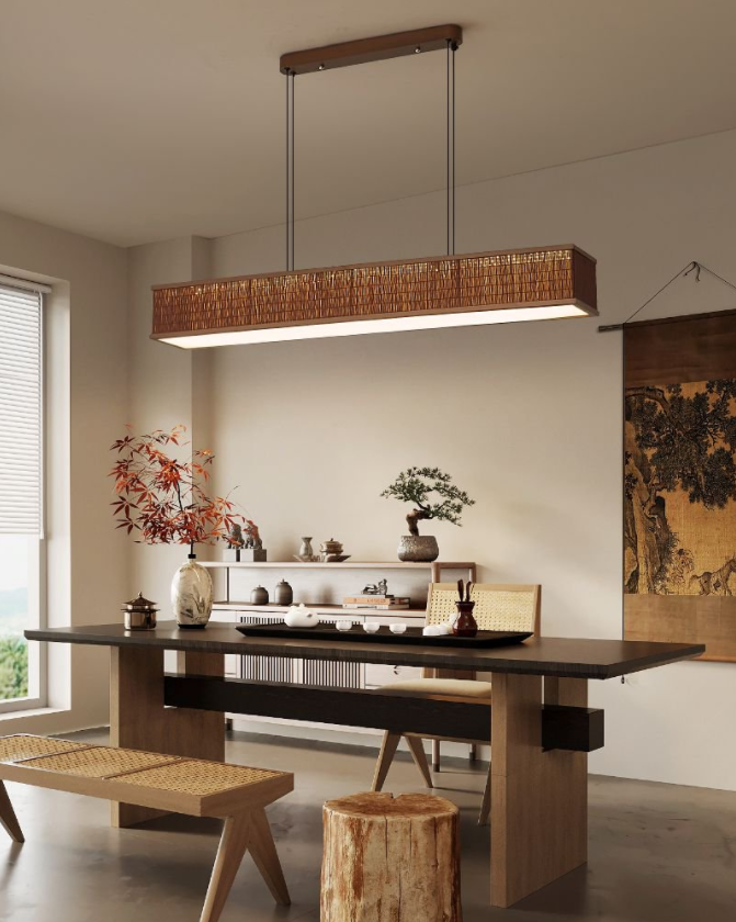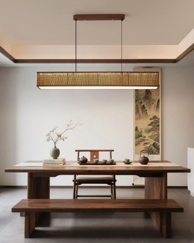 宋代美学餐厅吊灯新中式禅意茶室侘寂风竹条长条复古吧台餐桌灯具