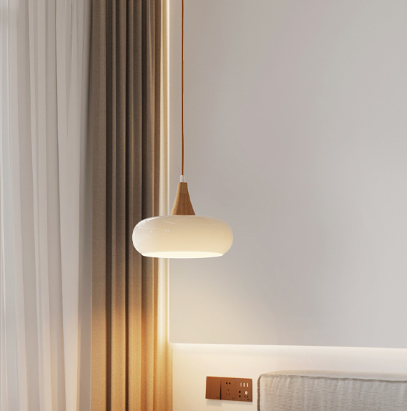 E27*1北欧吊灯餐厅灯单头床头吊灯吧台实木中古风简约现代奶油风护眼灯