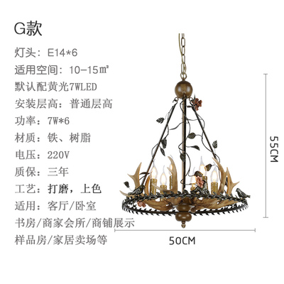 法式复古中国风客厅吊灯美式餐厅中古风卧室胡桃木玻璃灯中山灯具