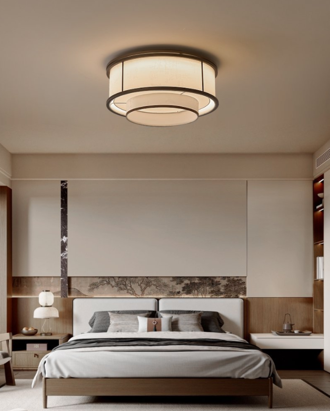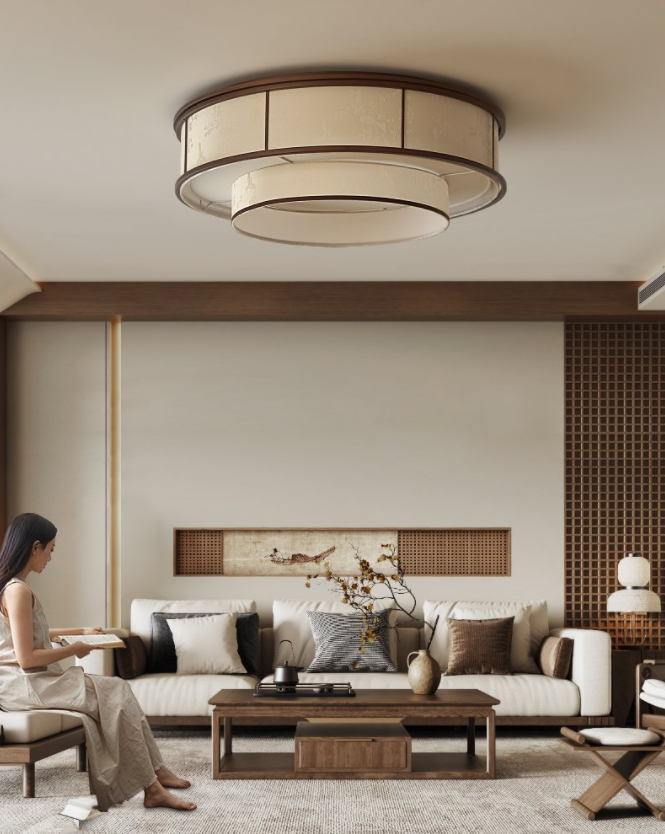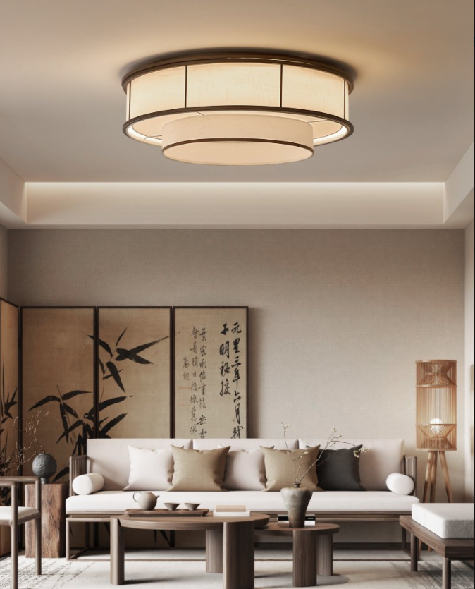 宋式美学餐厅布艺吸顶灯中古风复古简约吸顶灯禅意茶窒圆形客厅灯