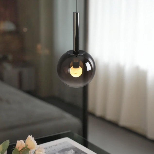 光映余晖-升圆形卧室床头吊灯小山丘轻奢感可升降调节简约现代吧台玻璃吊线灯