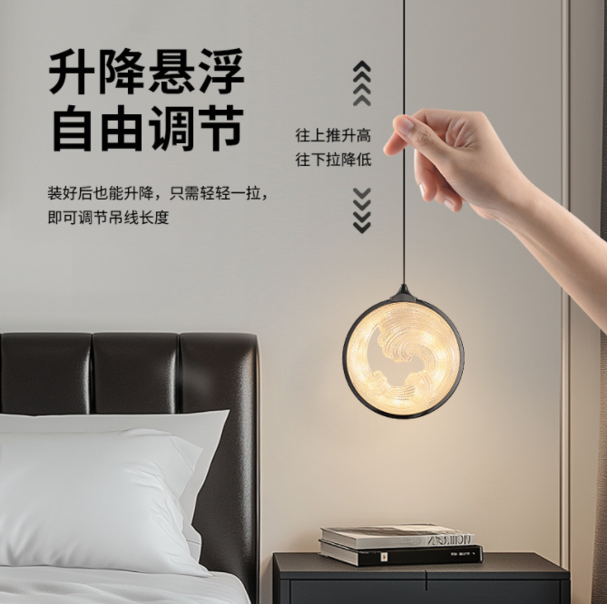 海浪-现代简约床头吊灯轻奢高级感可升降智能卧室书房玄关背景墙吊线灯灯升降手扫