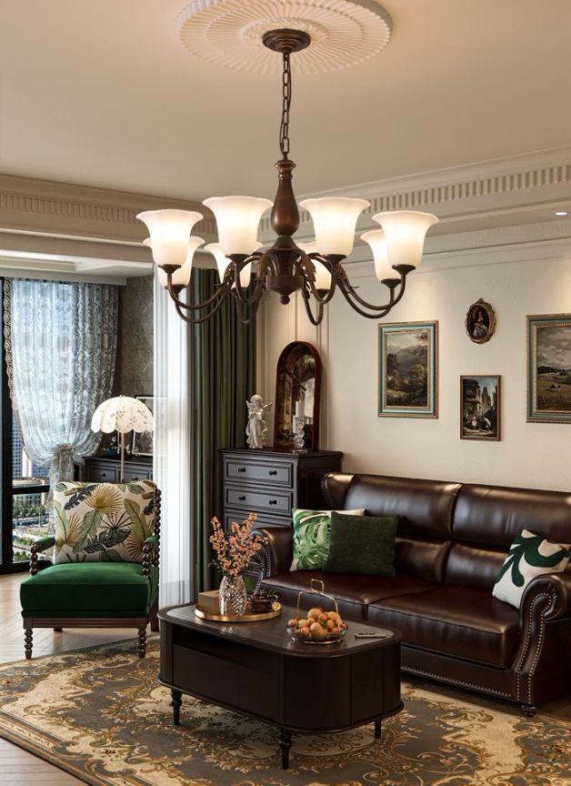 海星款全光谱意式极简胡桃木纹客厅吸顶灯中古风护眼主灯复古卧室灯