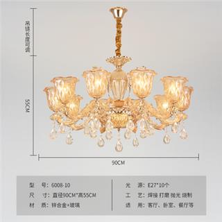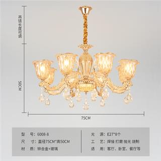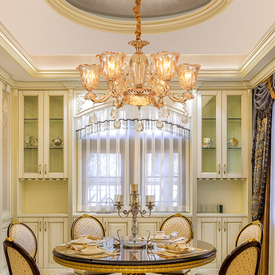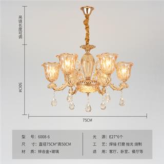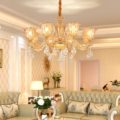 美式复古客厅水晶吊灯Vintage中古经典六臂黄铜法式复古餐厅吊灯
