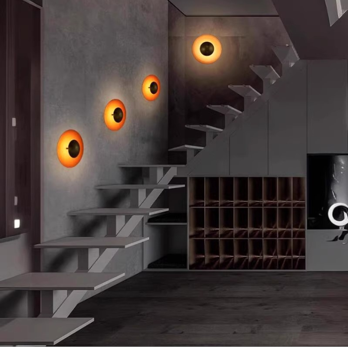 轻奢后现代设计师玄关卧室床头装饰圆形背景墙个性飞碟壁灯