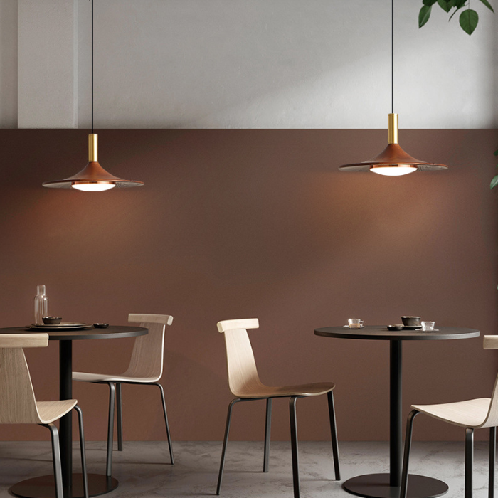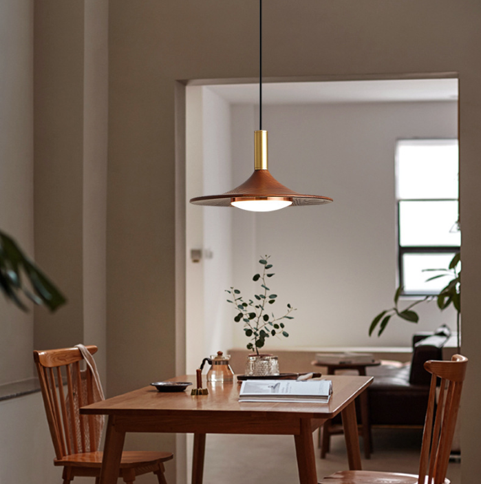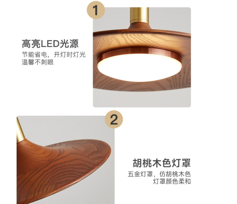 日式餐厅吊灯三头简约飞碟吧台灯胡桃木色灯铁艺灯具卧室床头吊灯