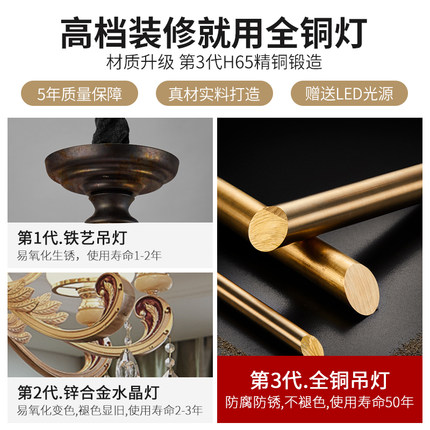 卧室吸顶灯欧式温馨婚房间全铜LED美式餐厅客厅阳台过道圆形灯具