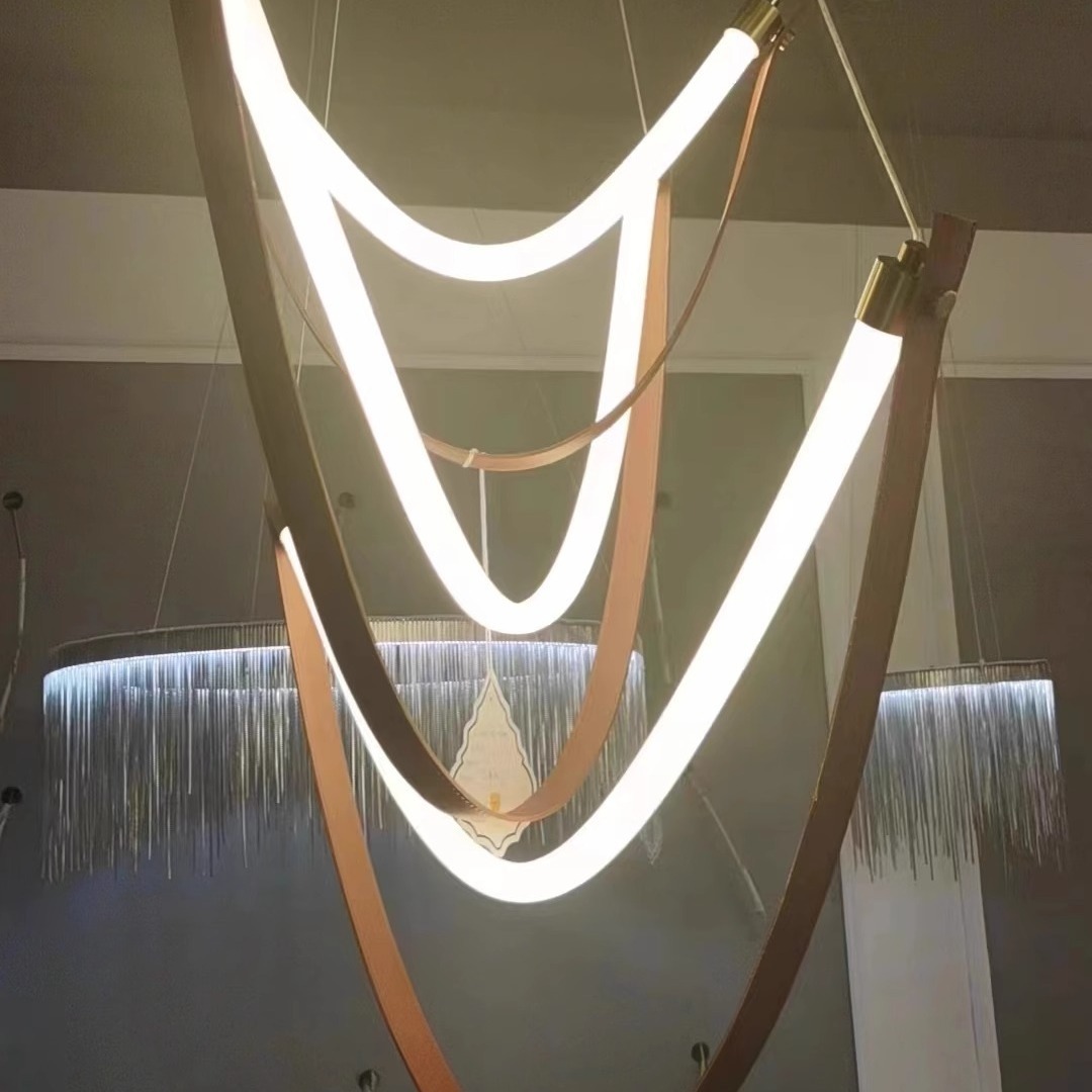 楼梯吊灯 复式楼别墅旋转长灯具现代简约大气创意个性led北欧吊灯