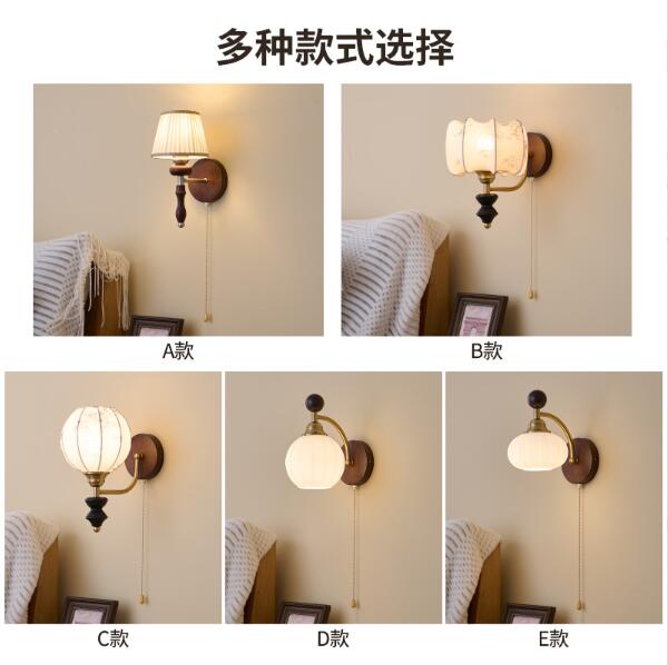 5个款 合集-法式中古风壁灯复古实木主卧室床头灯玻璃灯具拉链开关方式
