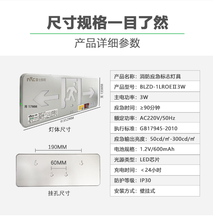 雷士照明LED消防应急标志灯指示牌单面壁挂安全出口向左疏散指
