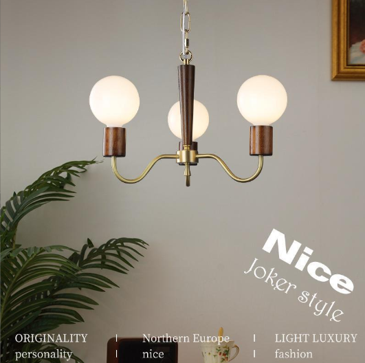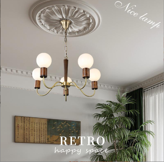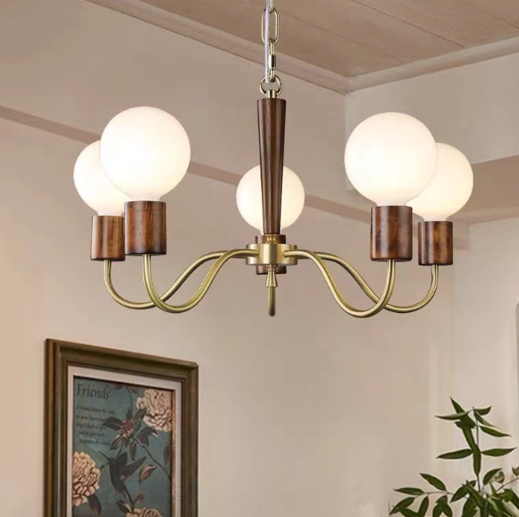 中古胡桃木客厅龙珠吊灯 黄铜美式复古餐厅茶室灯vitange卧室灯