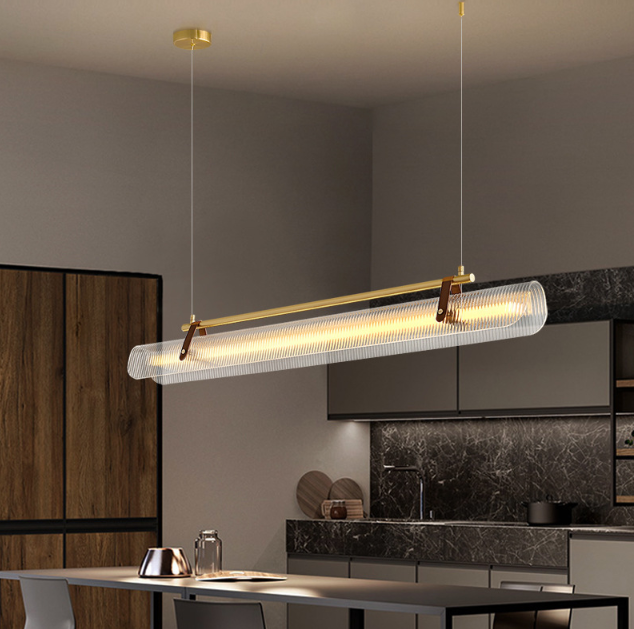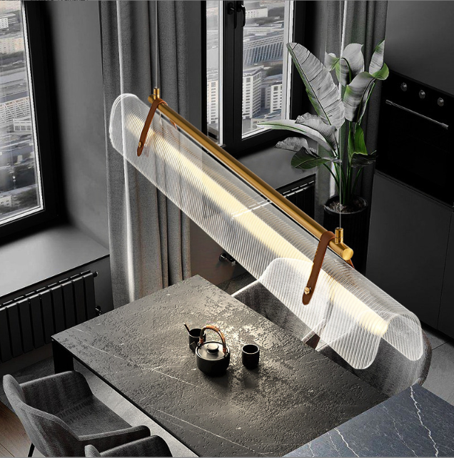 2025意大利新款-一字办公室皮革长条吊灯