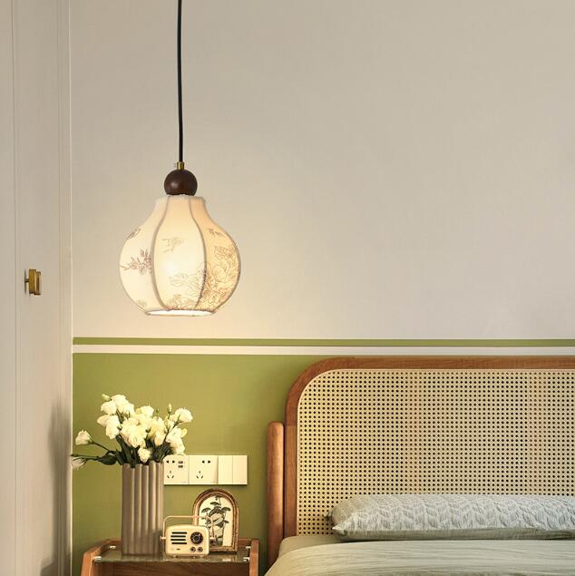 中古法式复古风餐厅吊灯中古岛台布艺印花美式高档卧室床头餐桌吧台灯