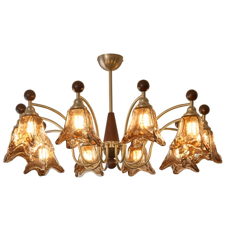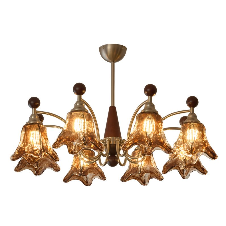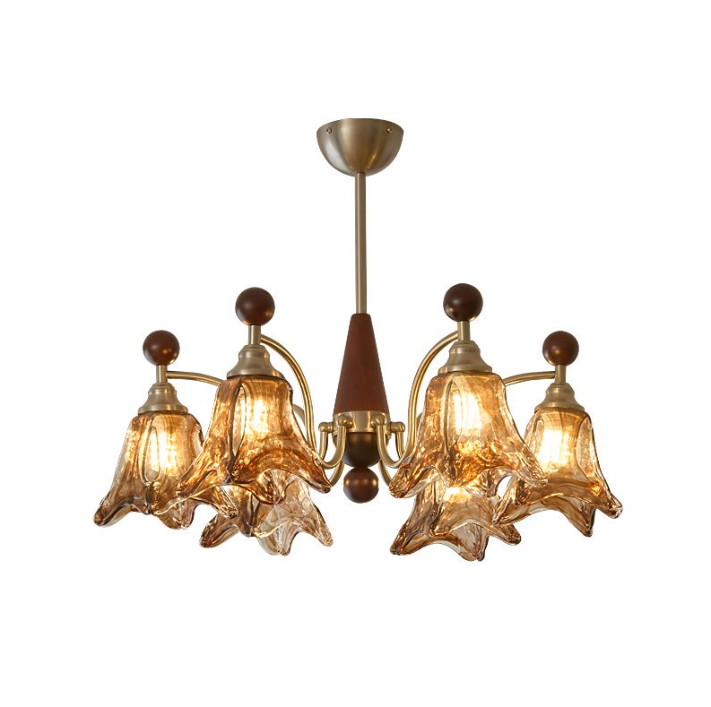 法式中古客厅吊灯美拉德琥珀光复古实木2025新款主卧室餐厅玻璃灯