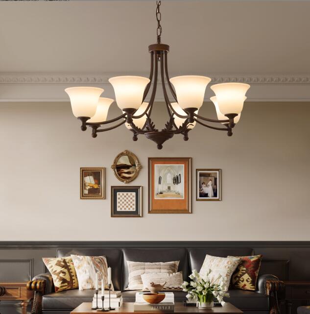 法式中古客厅吊灯复古布艺花纹新款卧室主灯南洋风民宿胡桃木灯