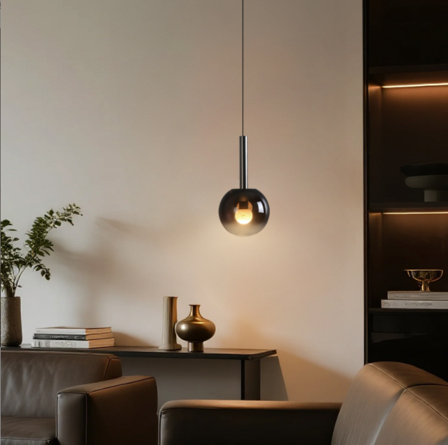光映余晖-升圆形卧室床头吊灯小山丘轻奢感可升降调节简约现代吧台玻璃吊线灯