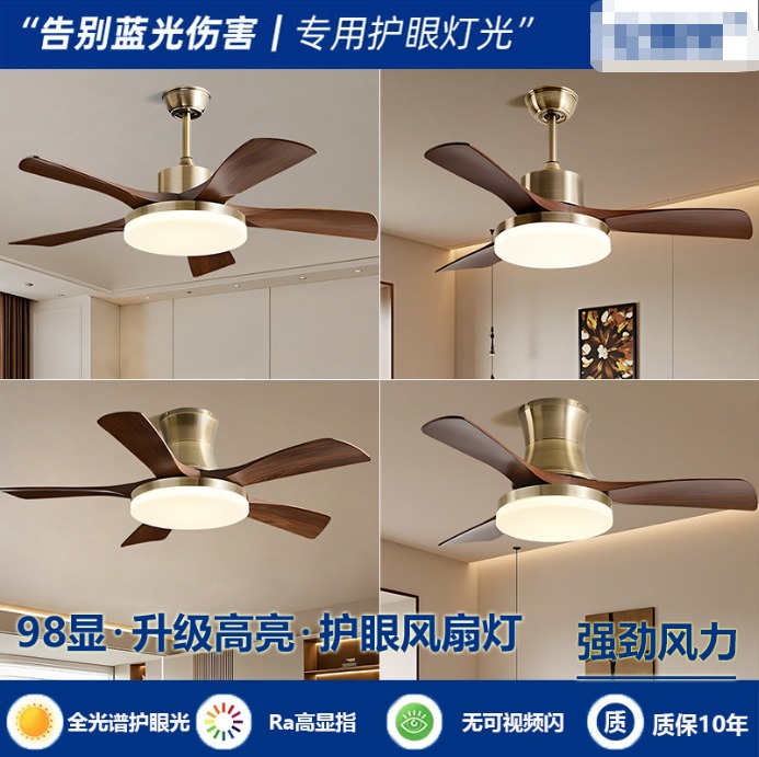 2025新款中古风全光谱吸顶电扇灯复古客厅餐厅风扇一体变频吊扇