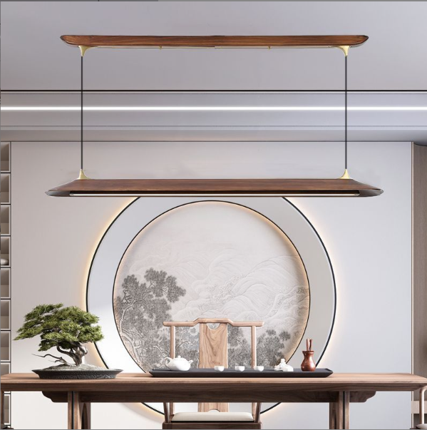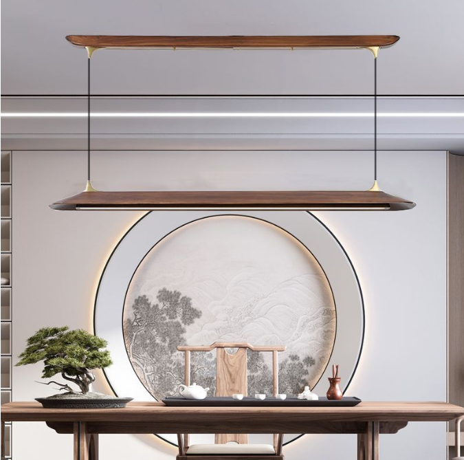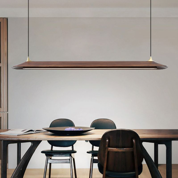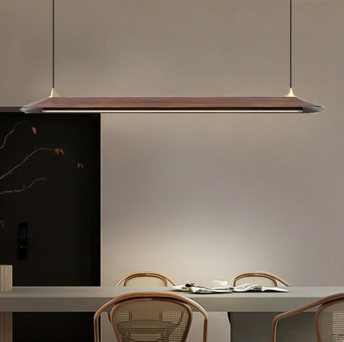 中古风极简松木长条led餐厅吧台吊灯侘寂风胡桃色茶室办公室吊灯