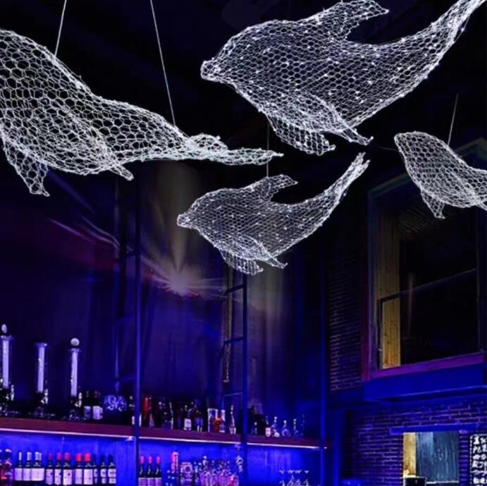 铁丝网满天星云朵鱼灯鲨鱼海豚鲸鱼餐厅服装店铺动物造型装饰吊灯