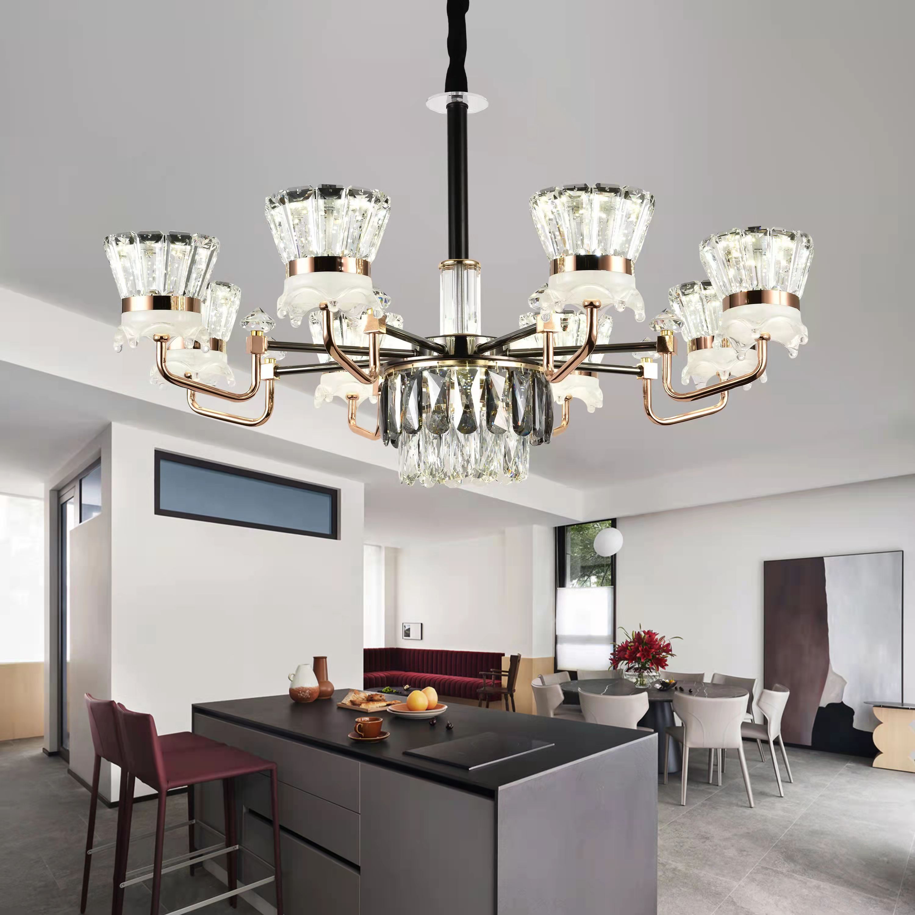 新款北欧法式客厅卧室复古黑色珍珠餐厅轻奢风吊灯水晶吊中山灯具
