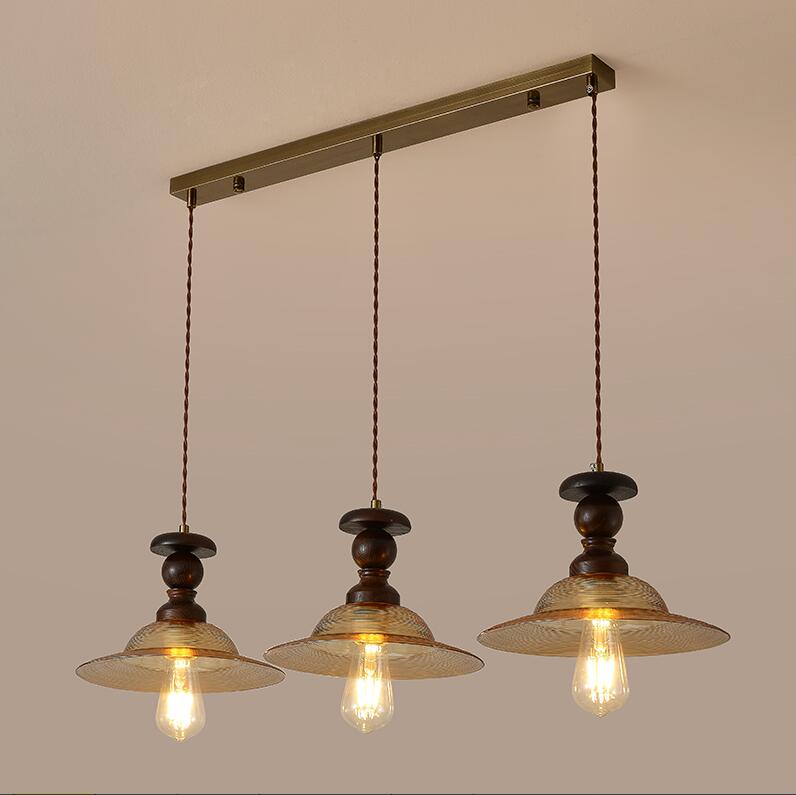法式中古风餐厅三头吊灯复古胡桃木色水滴吊灯卧室走廊床头小吊灯台灯单头