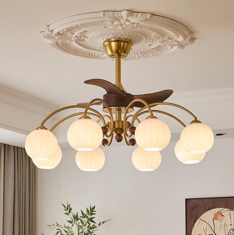 中古风客厅吊灯风扇灯吊扇灯美式乡村复古简约中古风大厅带电风扇餐厅灯