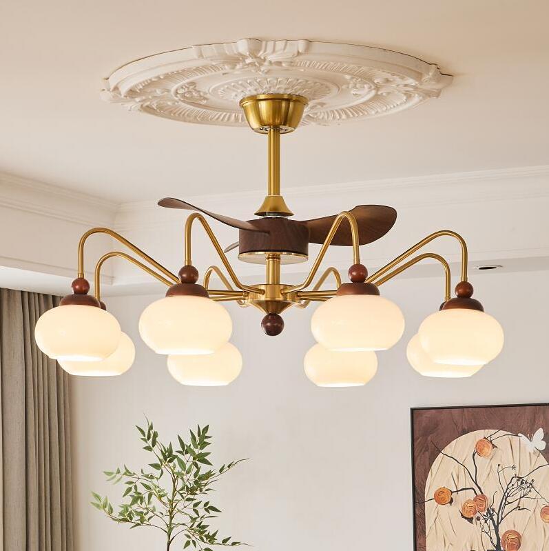 中古风客厅吊灯风扇灯吊扇灯美式乡村复古简约中古风大厅带电风扇餐厅灯