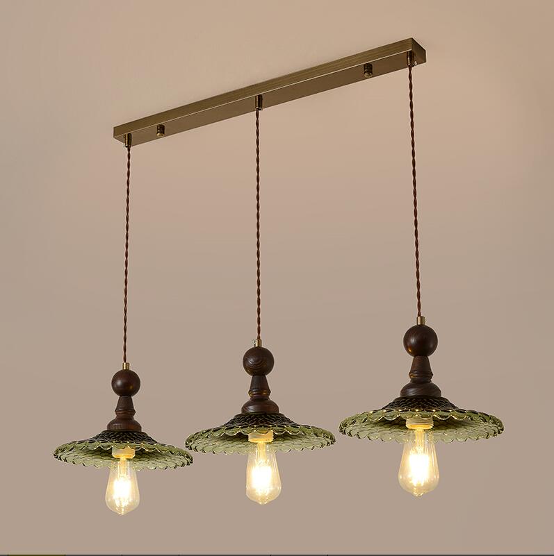 中古风餐厅吊灯美式复古床头小吊灯实木玻璃高级感简约吧台灯