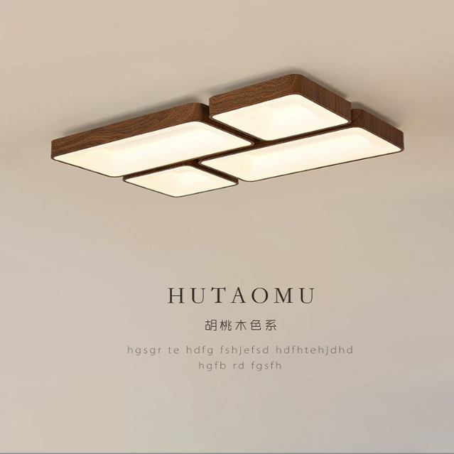 新中式客厅吸顶灯长方形家用大气简约现代日式原木纹led卧室灯饰