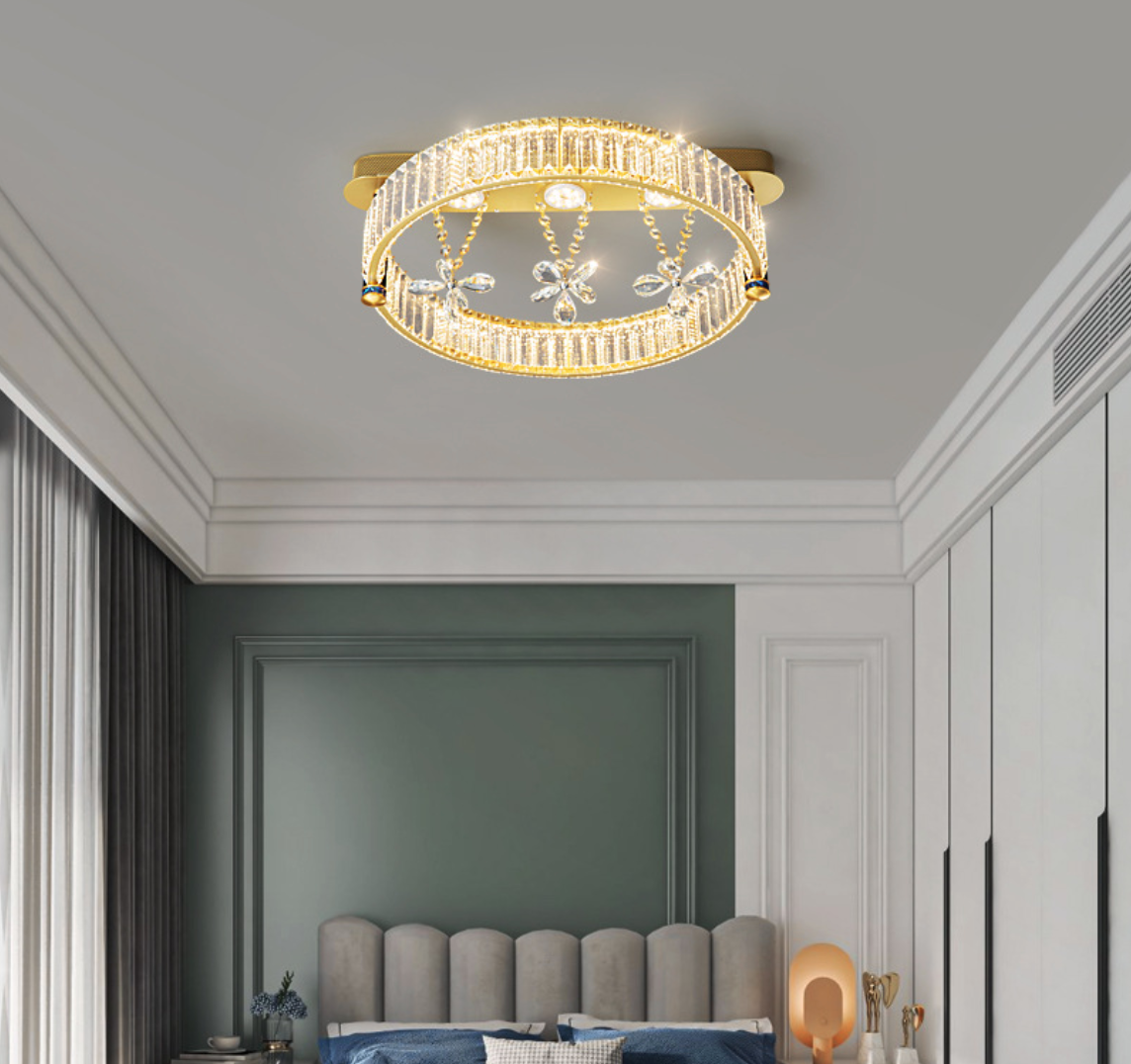 轻奢全铜水晶灯客厅灯吸顶灯现代简约大气餐厅灯卧室灯花形LED灯