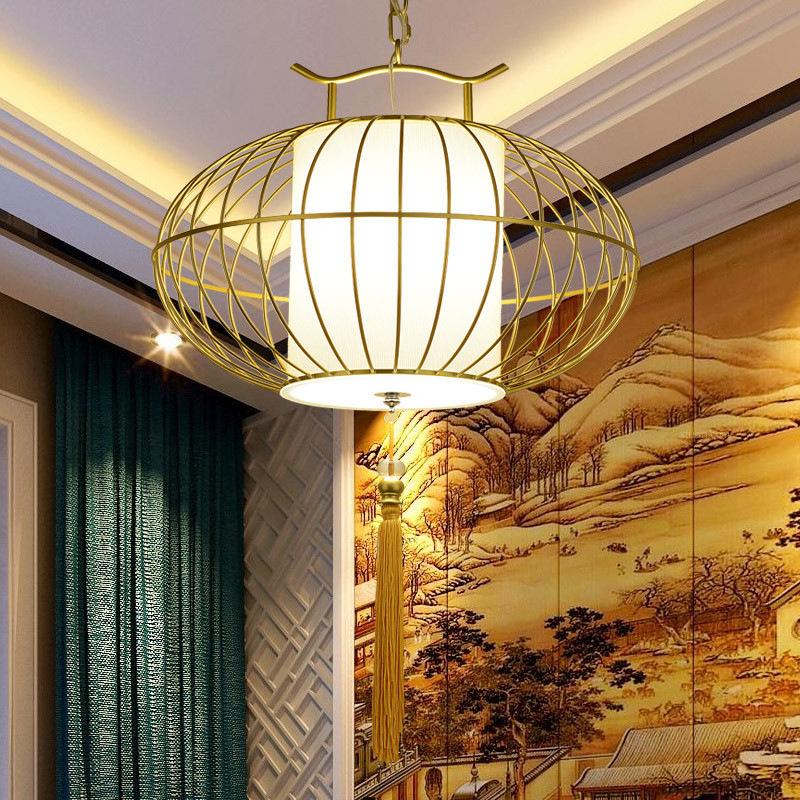 全铜法式浪漫客厅吊灯黄铜卧室餐厅中古百褶布罩吊灯布艺轻奢灯具批发