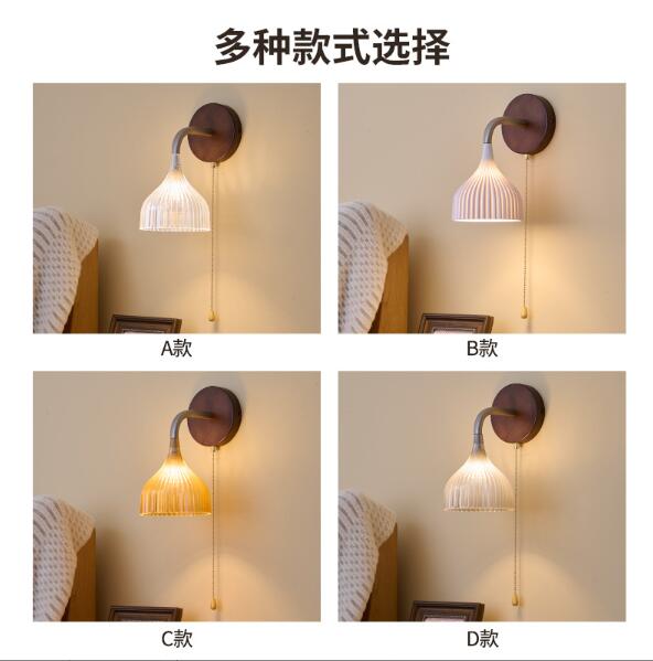 4个款 合集-法式中古风壁灯复古实木主卧室床头灯玻璃灯具拉链开关方式