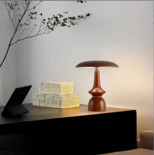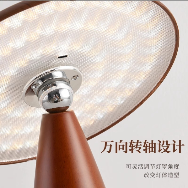 中古台灯复古实木卧室床头蘑菇灯日式侘寂风可旋转触摸开关氛围灯