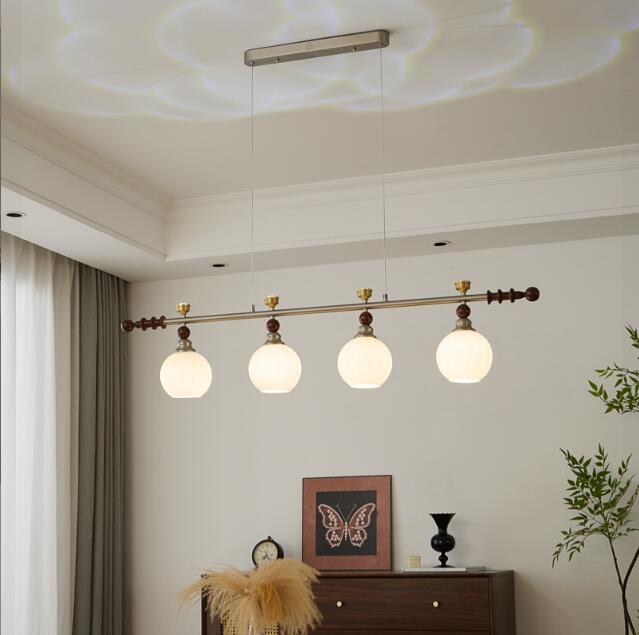 中古风法式中古风餐厅吊灯美式复古吧台灯现代简约一字长条玻璃护眼灯具