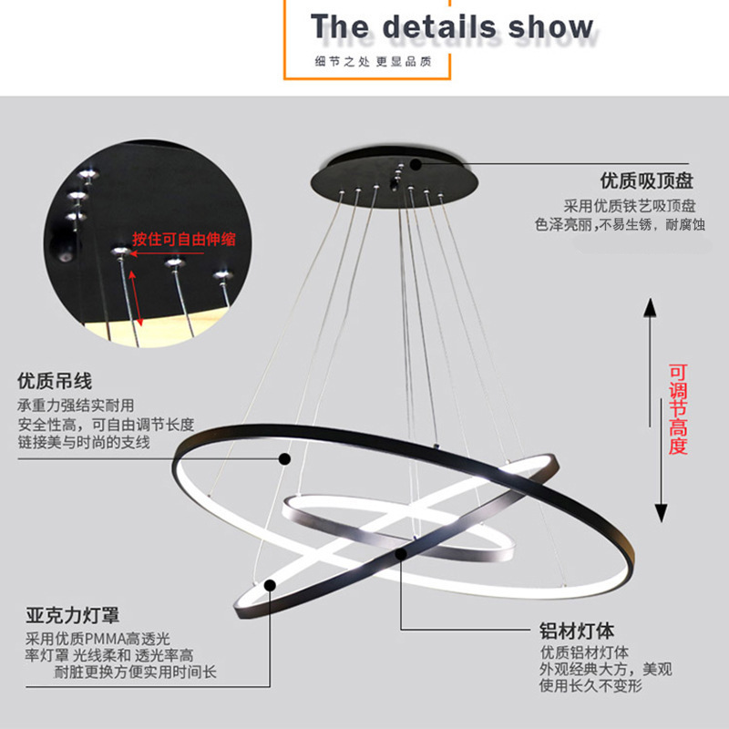 现代简约圆形吊灯北欧ins个性灯饰餐厅客厅铝材灯具卧室圆环吊灯
