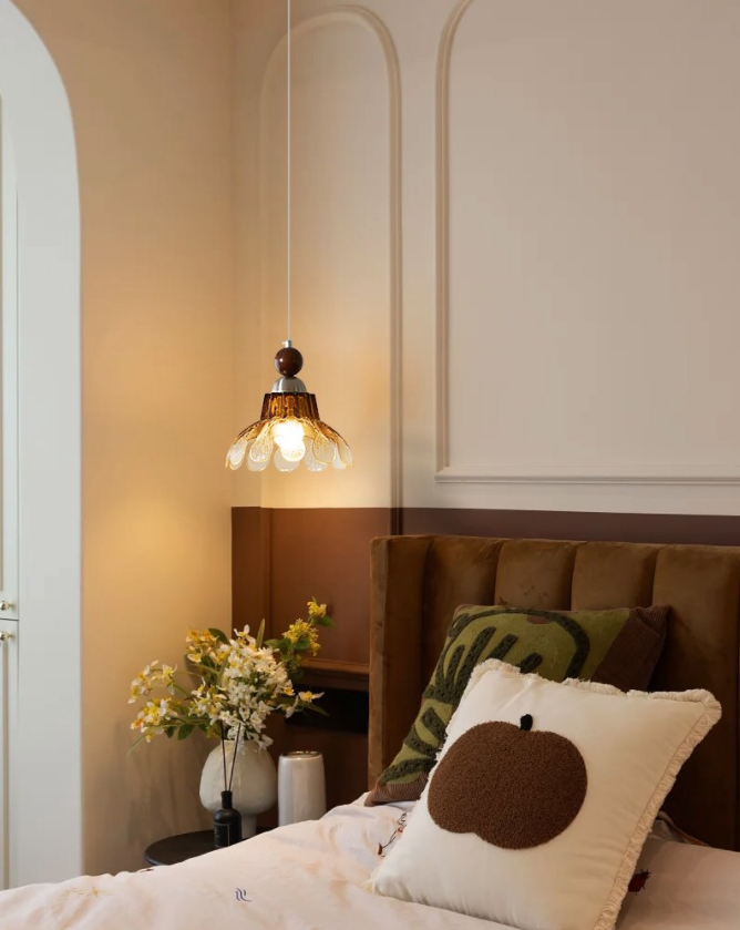 北欧卧室床头极简小吊灯ins设计师个性创意花朵餐厅吧原木走廊灯