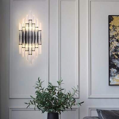 现代轻奢吊灯餐厅灯亚克力刻线长条灯设计师简约大气餐桌吧台吊灯